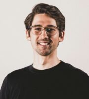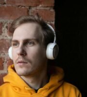A pole displays a large advertisement for electricians and plumbers with urgent hiring needs in Italian. Below this is a colorful sticker for 'Moon Omens' featuring a stylized eye logo, alongside social media icons and web address.